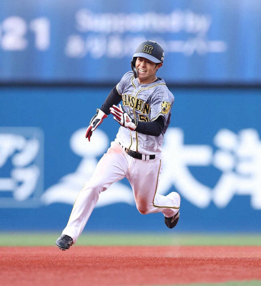 4回1死三塁でカウント1―1から阪口の内角直球を左前へ。「何としても1点取りたいベンチの思いも踏まえて、やってやろうと」。佐藤輝を還し、一塁上で力強く右手を掲げた。3点差へ広げ、最後は1点差。この追加点が最後に効いた。