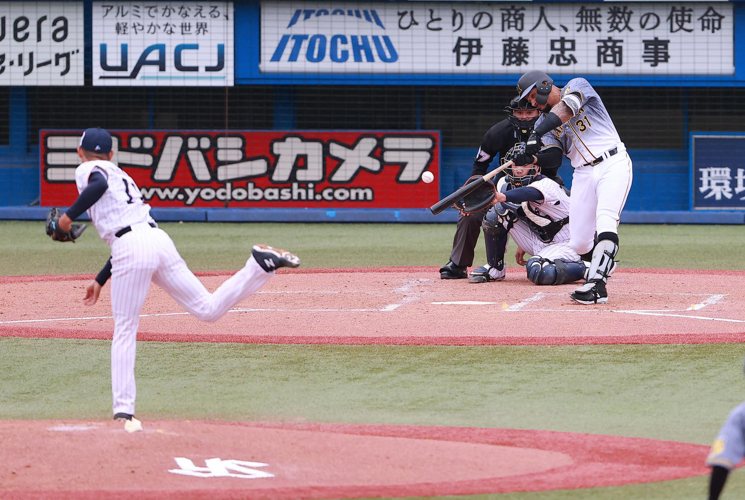 この日は守備でも光った。5回無死一、二塁からバントにチャージし、三塁送球で進塁を防いだ。「守備でも積極的に攻めることを心がけている。今日は守備でもいい仕事ができたね」。昨年は1試合4失策など不安もあったが、今季はここまで1失策のみ。来日3年目の助っ人はバットに守備に頼もしい。【林亮佑】