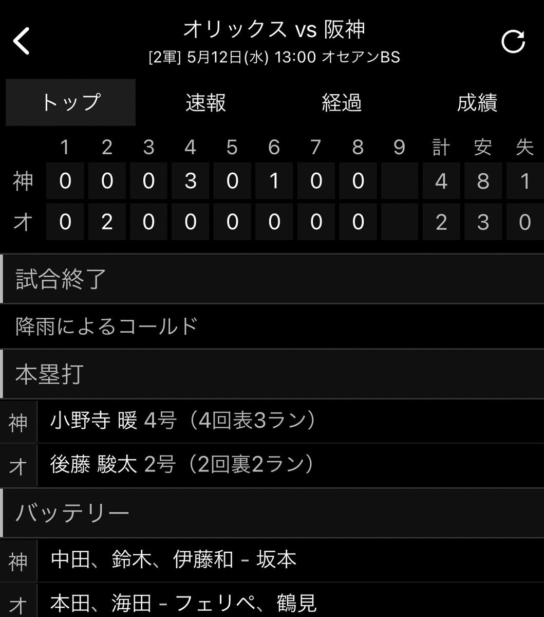 阪神中田賢一、雨の2軍戦5回2失点「結果的に2点だけだったので、もったいなかった」2ラン被弾悔やむ 2021年05月13日 カテゴリ:元阪神 mixiチェック <ウエスタン・リーグ:オリックス-阪神>◇12日◇オセアンBS阪神中田賢一投手が雨中で安定した投球を見せた。2軍オリックス戦に先発し、坂本とバッテリーを組み5回3安打2失点に抑えた。2回2死一塁から後藤に3ボールから2ランを被弾。「打たれてはいけないボール。結果的に2点だけだったので、もったいなかった」と悔やんだが、この1発だけに抑え、落ち着いた投球だった。 ともラギ 🐯 @tomoragi_soryu 2021-05-12 20:41 中田賢一レベルの選手をFAで獲得した球団があるってマ? ていうか中田賢一の方が活躍しそうなんですがそれは 🐯虎太郎27@🎊2021年こそ阪神優勝目指していただきたい🏆 @H5_toratoroton9 2021-05-12 18:48 阪神2軍はことらほー。 2軍では小野寺暖選手の逆転3ランが決勝点となり、中田賢一投手が5回2失点の好投でした。 試合はコールド勝ちでした。 pic.twitter.com/Xn6yicp9hc 🐯M2S🐯 @UmT2n 2021-05-12 14:47 小野寺弾めちゃくちゃ打つ 中田賢一も意外と良いピッチングしてる しんたろう @shin72826 2021-05-12 14:32 先発が足りない中で下で安定してイニング食ってまずまず試合作ってくれる中田賢一さん優秀 The retirement account of karikari @subbbbbbbbbb28 2021-05-12 14:25 中田賢一さんが二軍でイニング食ってくれるのはありがたいね。タダで貰ってきたのに ヨームシウマイ弁当 @yo_mu 2021-05-12 17:25 |ω・)…中田賢一も39歳かー… ヨームシウマイ弁当 @yo_mu 2021-05-12 17:26 |ωΦ)…すんたからツーラン被弾してる… なんJアンテナ @antennanj 2021-05-11 23:59 本日5月11日は中田賢一選手39歳の誕生日です。おめでとうございます。 https://nanj.proyakyuantenna.com/aid/6325081/ タグ :#阪神2軍#ウエスタン・リーグ#中田賢一#5回2失点#阪神タイガース 「元阪神」カテゴリの最新記事 コメントする コメントフォーム 名前 コメント 記事の評価 リセット リセット 顔 星 情報を記憶 コメントを投稿する