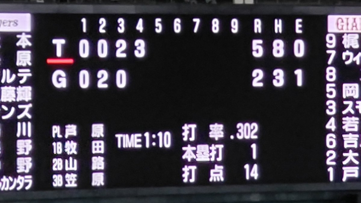 @hanshintigersjp 今日、巨人、やたら点くれる🤭🤭🤭アルカンタラ、バント職人👍