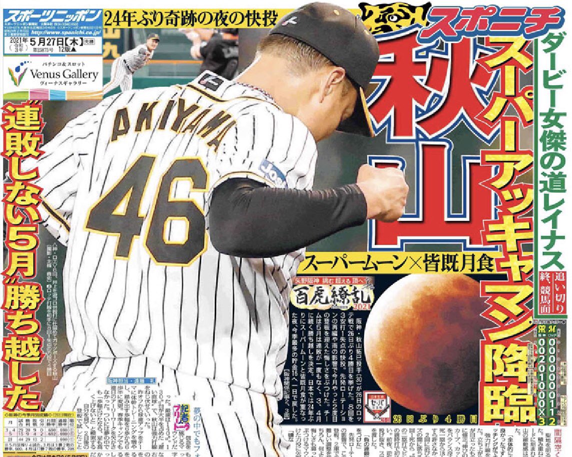 日本では24年ぶりにスーパームーンと皆既月食が重なった夜、チームを交流戦初勝利と5月勝ち越しに導きました🐯