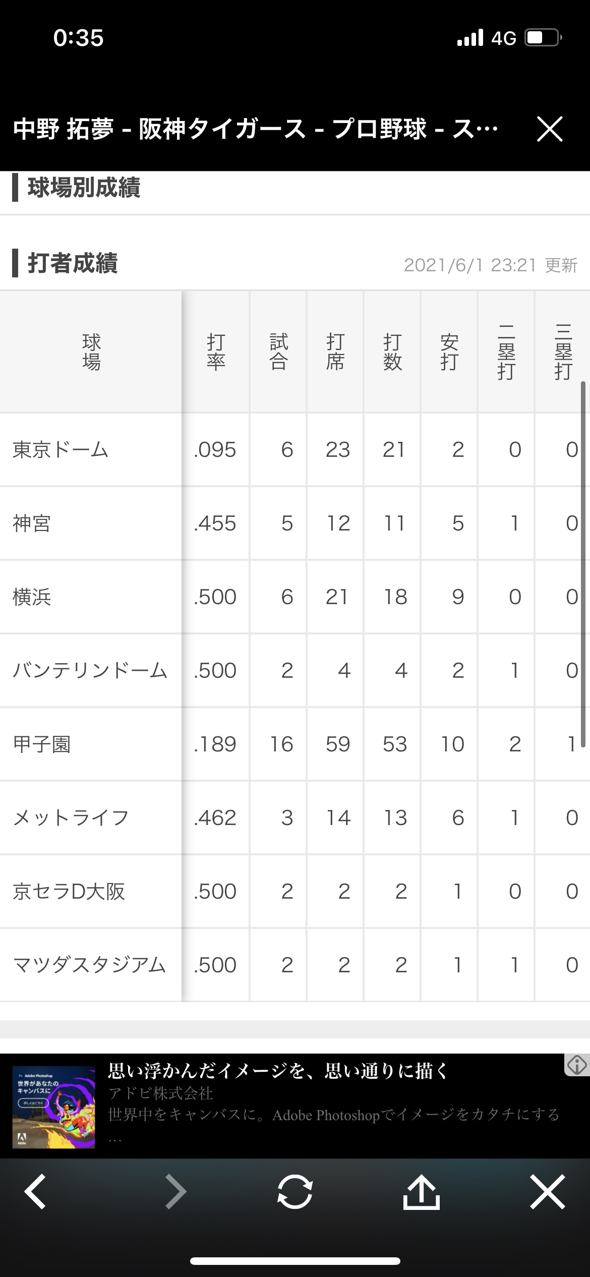 佐藤も東京ドームで打ってないイメージ