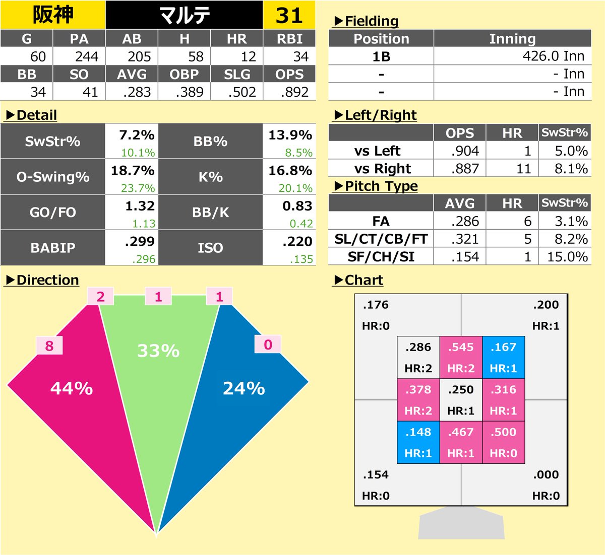 ハイボールヒッターとして知られるが、今季は低めも高打率 pic.twitter.com/zFCcUjMBEW