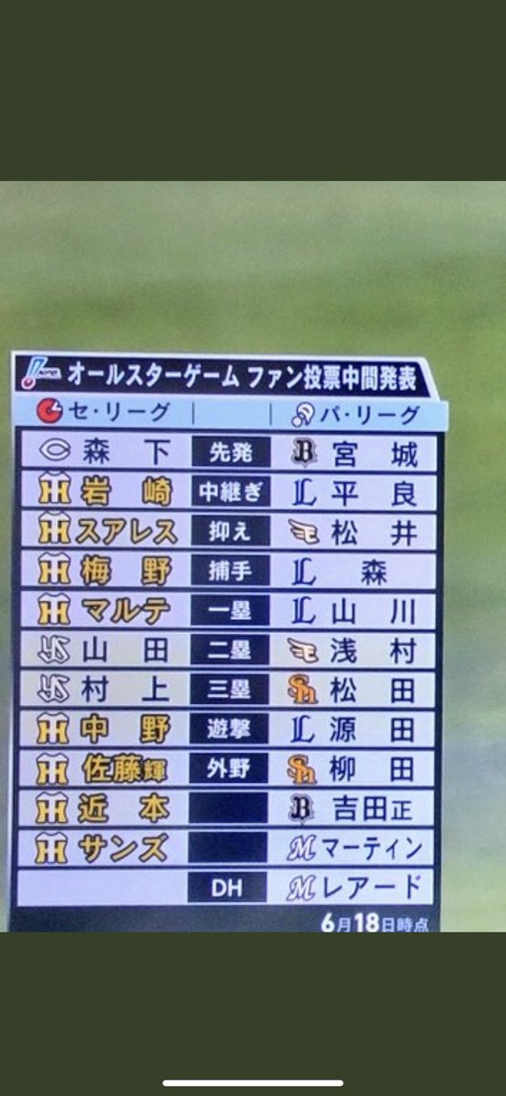 阪神の選手が全ポジション1位〜5位以内にいて感動(´:ω:`)♡