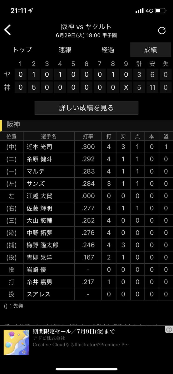 「阪神5-3ヤクルト」(29日、甲子園球場)