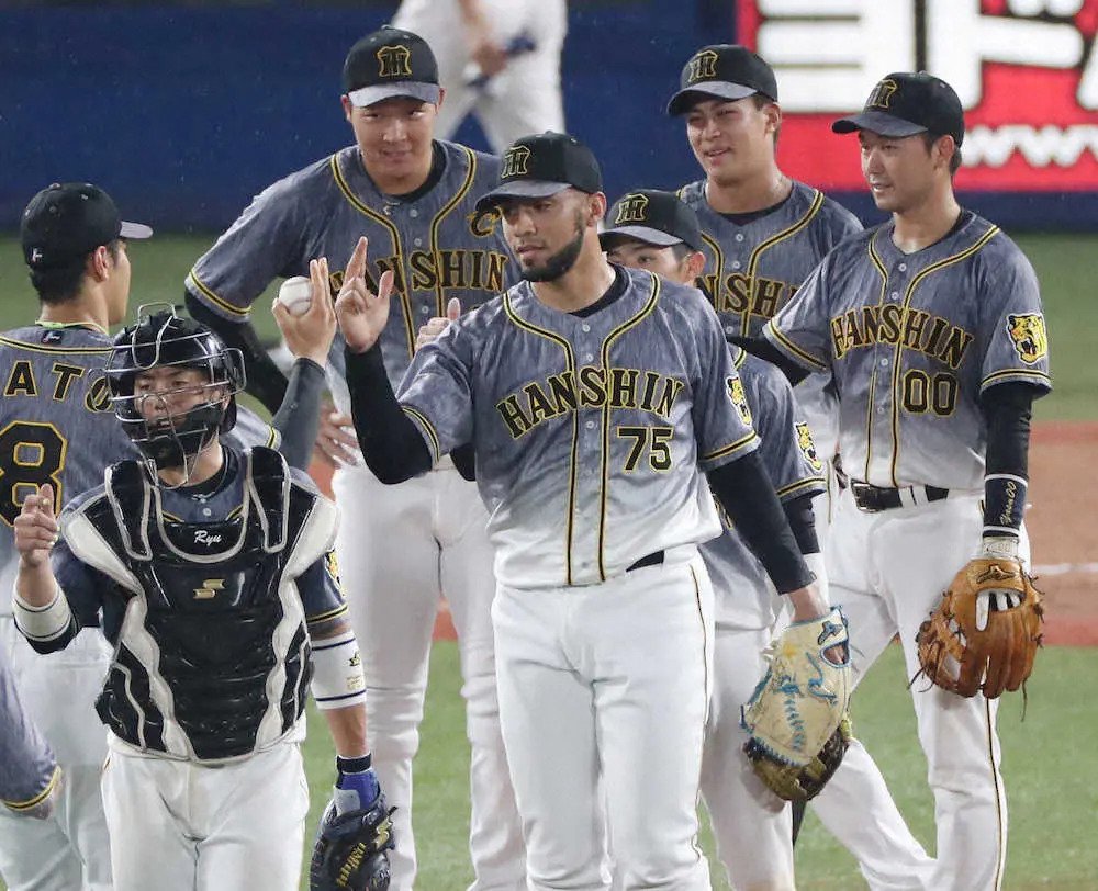 お返しの24セーブ目だ。阪神・スアレスが5点差の9回1死満塁から、馬場をリリーフ。アウト優先の投球で、相手の反撃の火を消した。サンタナを156キロツーシームで中犠飛に打ち取ると、代打・内川も154キロで右飛に片付けた。ヤクルト打線を4球でねじ伏せた。