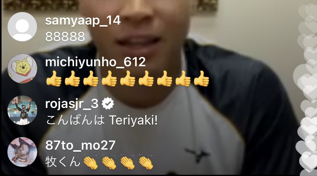 佐藤輝のことを「Teruaki」ではなく「Teriyaki」と呼んでいるのか!?その真相は明らかではないが、2人のインスタライブを鑑賞していたようだ。