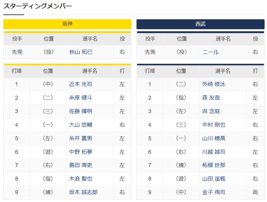 @hanshintigersjp スタメン全員日本人選手!