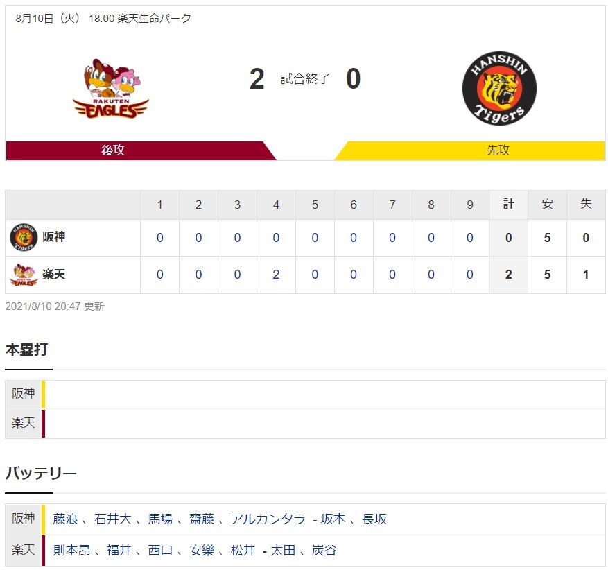 【エキシビション】阪神0-2楽天