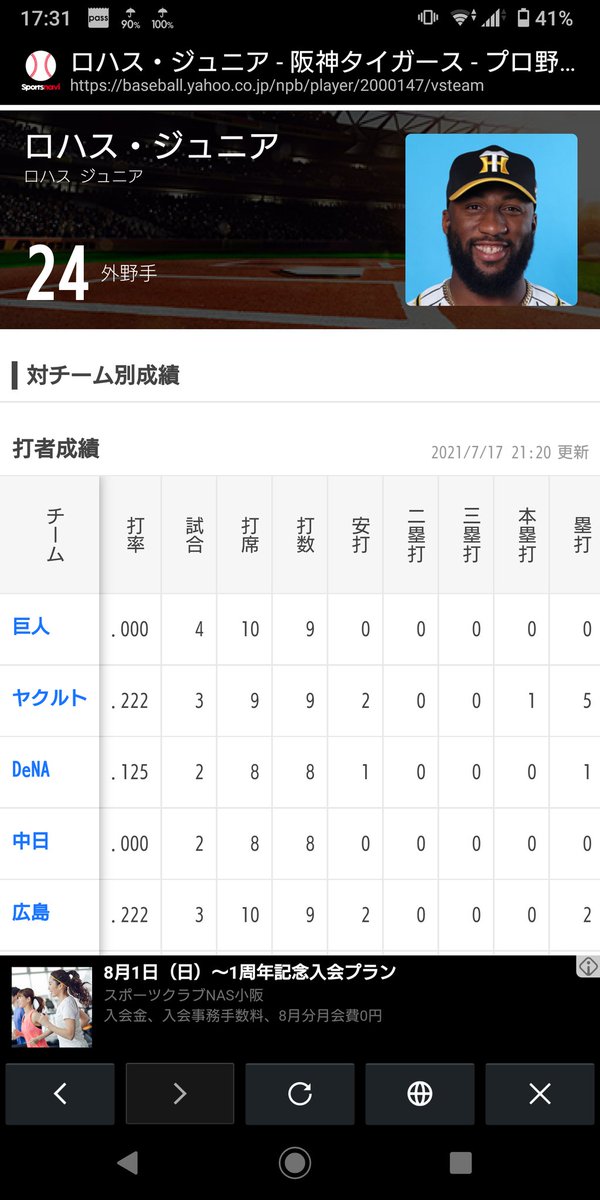 @hanshintigersjp ロハスは代打に向かないし、一軍に上げたならスタメンだよな。