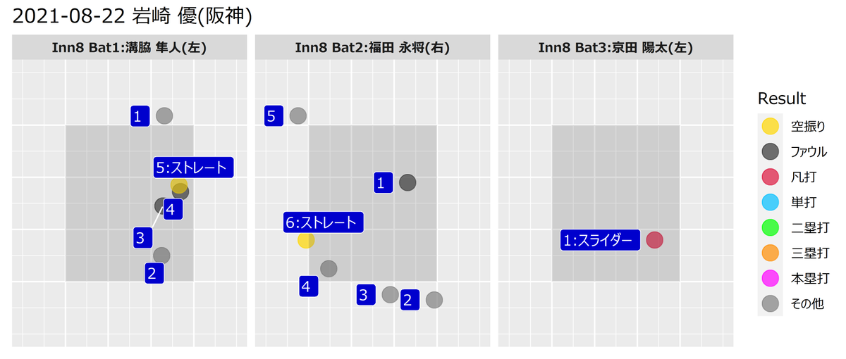 先発秋山の後を受けて8回のマウンドへ。溝脇、代打福田を直球で連続三振に仕留めると、京田をスライダーで二ゴロに仕留めた。