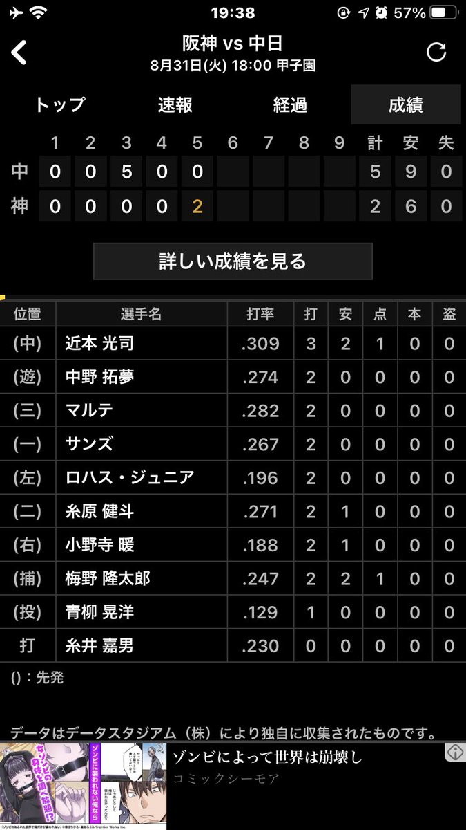 マルテ選手が居たから優勝🏆争いできていることを分かったかな?阪神タイガース🐯5対5