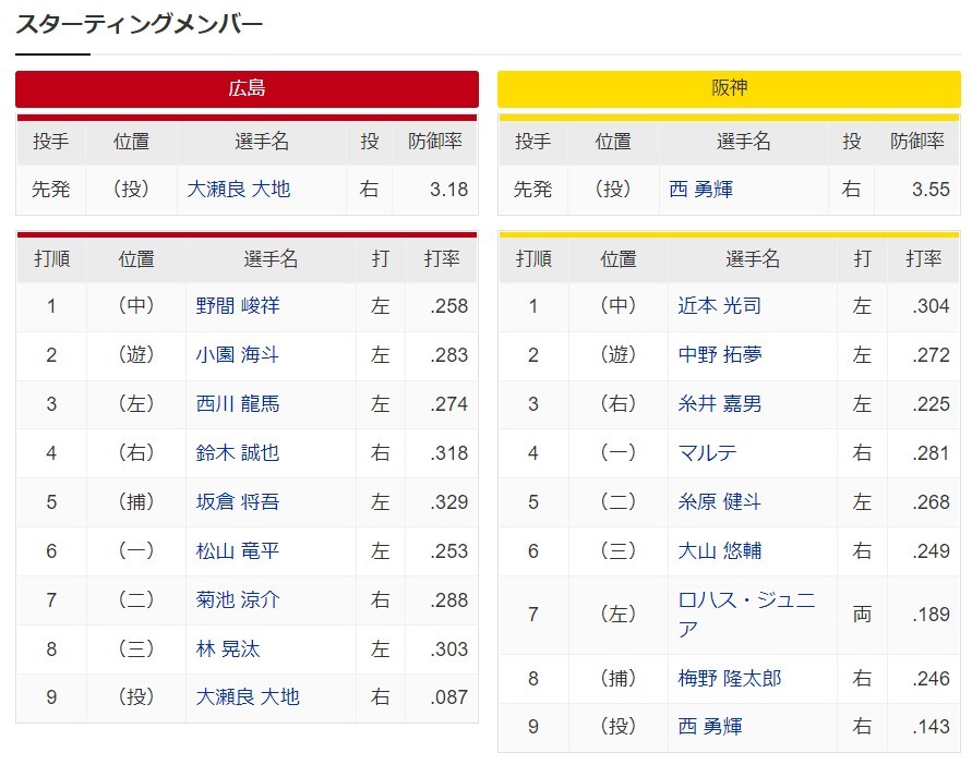 @TigersDreamlink 糸原とロハススタメン逆やろ?書き間違えじゃないよね?勝つ気がかんじられない