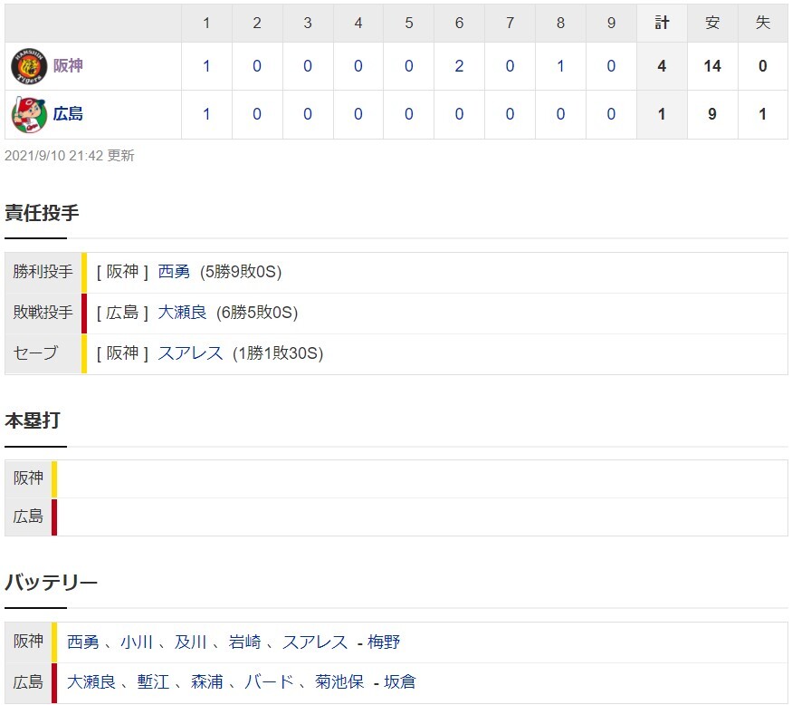 【一軍】阪神4-1広島