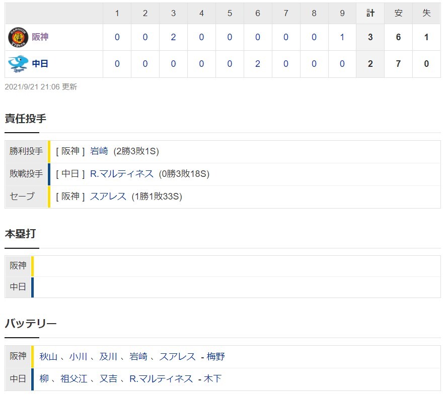 【一軍】阪神3-2中日