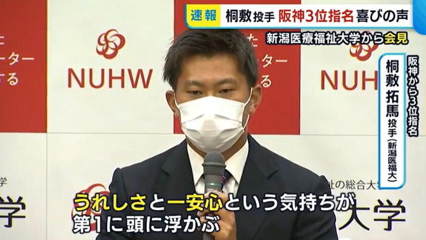 新潟医療福祉大学の桐敷拓馬投手が、阪神から3位指名を受けました。