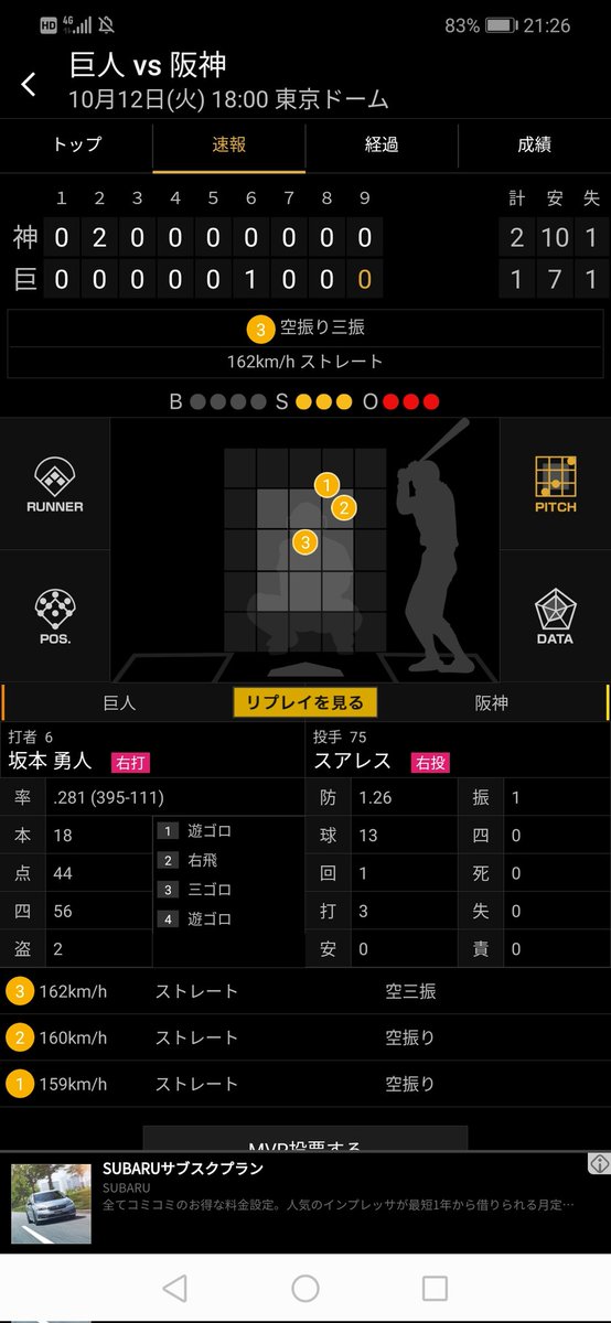 @hanshintigersjp 坂本のリード、全く予想できなかった