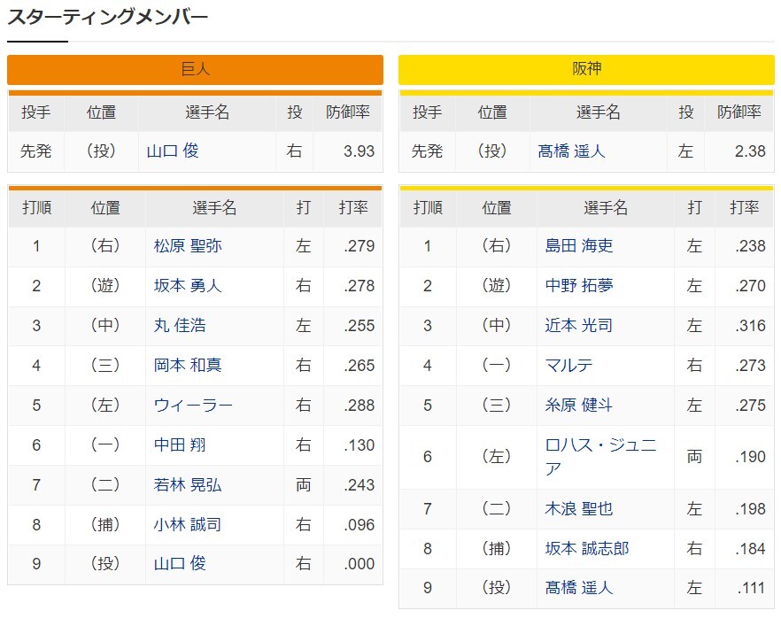 巨人ー阪神(14日・東京)