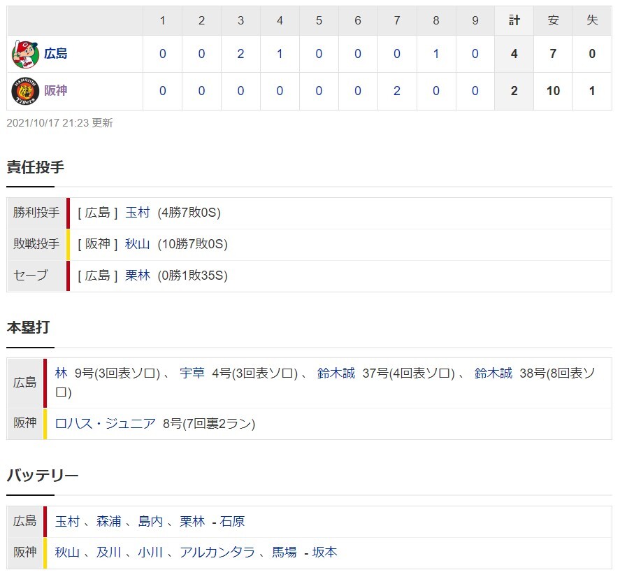 @hanshintigersjp ホームラン…