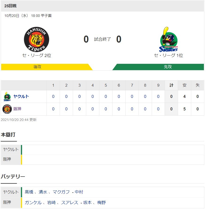 【一軍】阪神0-0ヤクルト