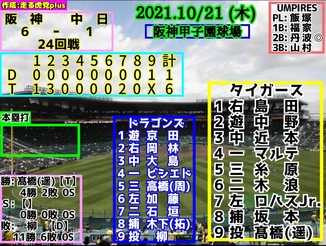◇セ・リーグ 阪神6-1中日(2021年10月21日 甲子園)