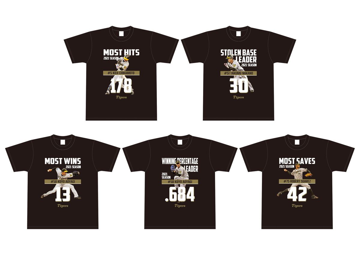 阪神はきょう5日から、2021年セントラル・リーグにおいて個人タイトルを受賞した選手の、Tシャツやフェイスタオルなどの記念グッズを発売すると発表した。