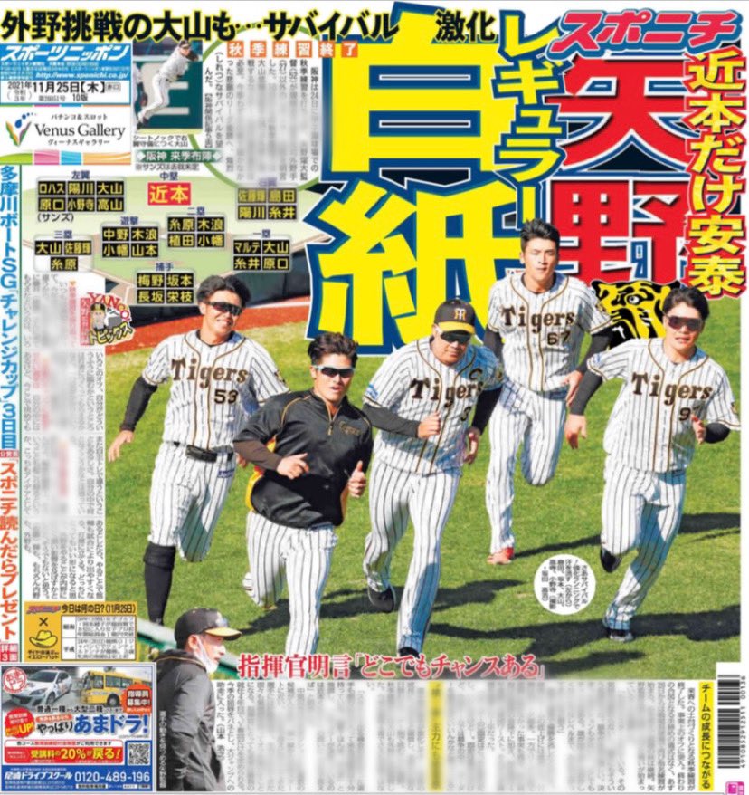 阪神・佐藤輝 秋季練習打ち上げも“延長戦”突入 26日からの若虎強化練習に合流へ― スポニチ Sponichi Annex 野球 https://www.sponichi.co.jp/baseball/news/2021/11/25/kiji/20211125s00001173114000c.html …