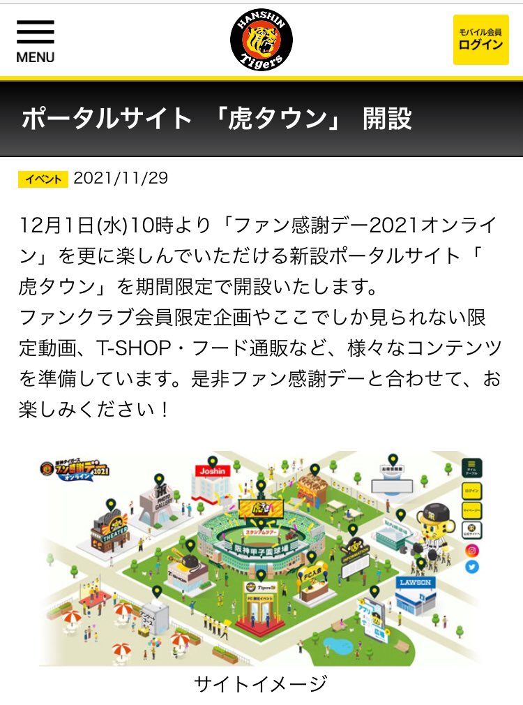 【阪神タイガース】ポータルサイト 「虎タウン」 開設 (2021-11-29)