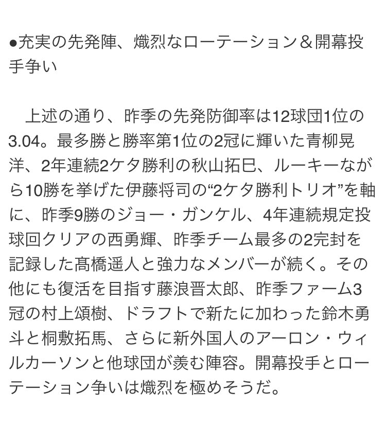 ●充実の先発陣、熾烈なローテーション&開幕投手争い