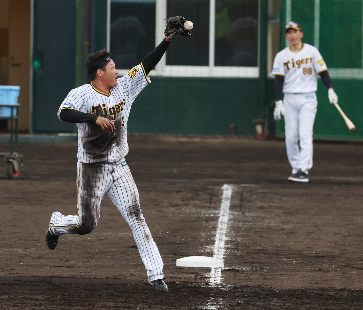 三塁ポジションでは4番を争う大山と佐藤輝が矢野監督のノックを受け、二塁ポジションでは近本と木浪が井上ヘッドのノックを受けた。「輝!」「悠輔!」と声をかけながら、トータル45分間、490本以上のノックを行った指揮官は「キャンプに来たんだから、1回くらいはやってもいい。体?オレは大丈夫。やってる選手はしんどいやろうけど」と振り返りながら、「輝はまだまだ守備とか継続してやるのは苦手。大山との違いは歴然。でも、経験しながら強い選手になってほしい」とメッセージを発した。