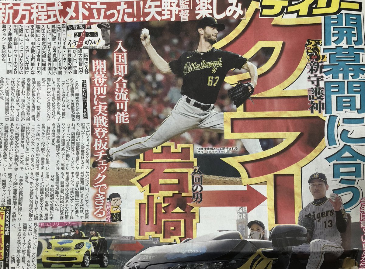 新守護神候補のケラーはんが開幕までに間に合うんは、黄色さんにとってホンマに朗報や。早く実戦での投球をみたい!どんな特徴のピッチャーかは他球団の注目新助っ人の紹介と一緒に載っとるんで、皆さんこちらも要チェックでっせ! pic.twitter.com/dk2kU7GEqu