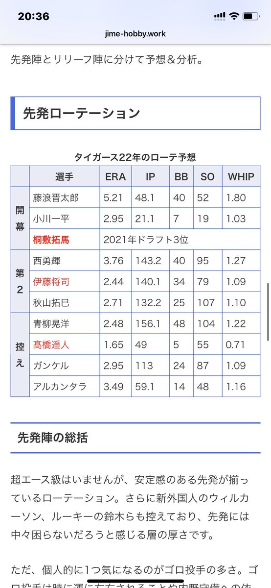 ウィルカーソンもガンケルぐらい安定感あるなら今年も先発陣に困る事はない😊