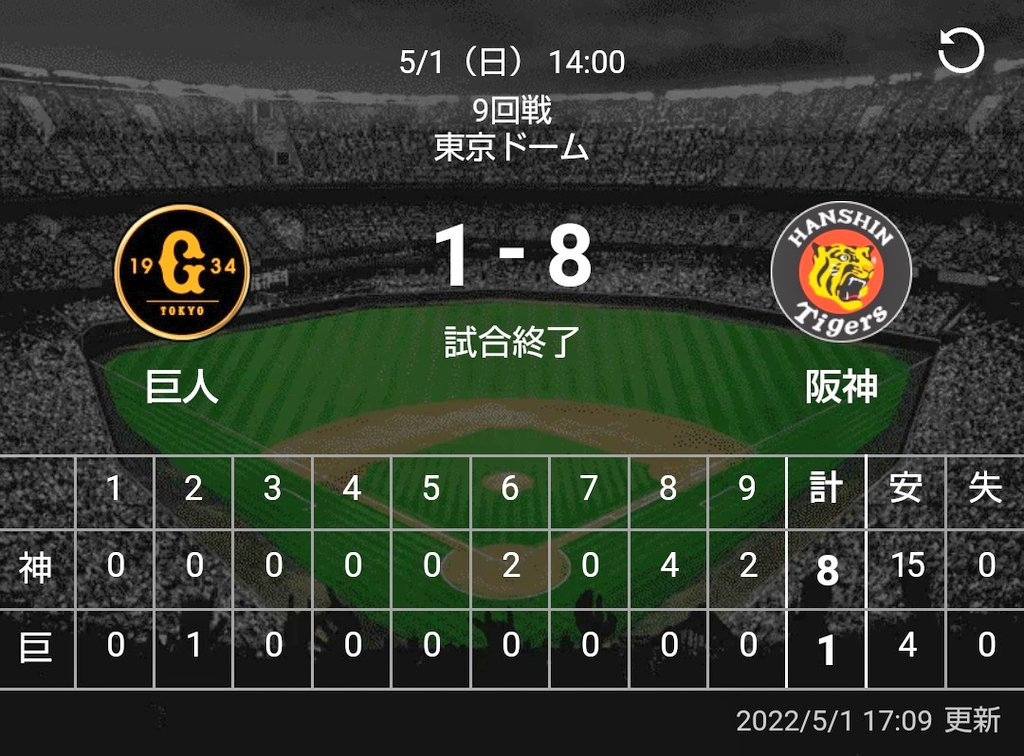 阪神8-1巨人 (東京ドーム)