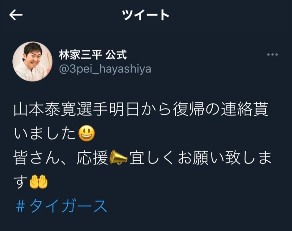 というのは置いといてヤスおかえり https://twitter.com/hanshintigersjp/status/1529724102855954432 …