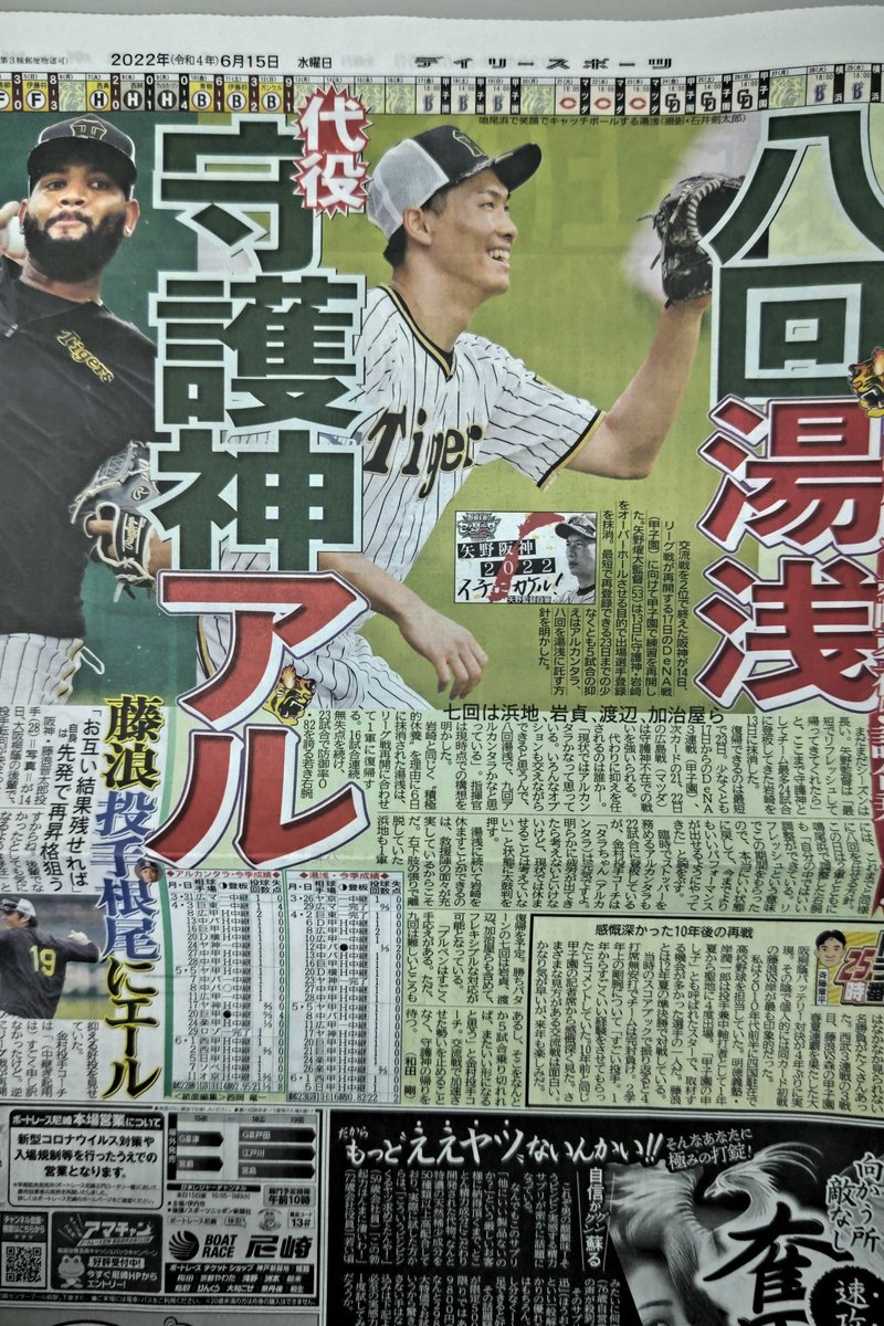 【阪神】リフレッシュ休養岩崎の代役守護神はアルカンタラ 湯浅京己は「8回の男」で起用(日刊スポーツ)