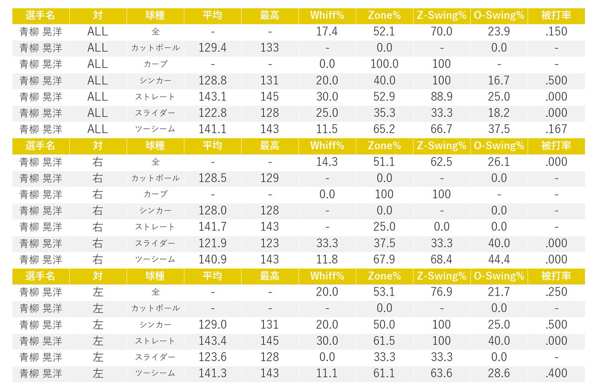▼1試合4失点は今季自己ワーストだったが、6イニングを投げ自責点は3。クオリティースタート(QS=6回以上、自責3以下)率100%は継続した。