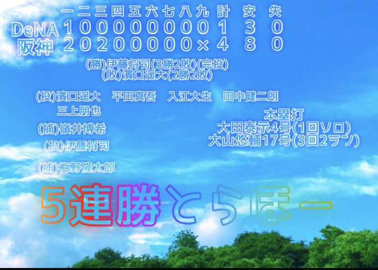 佐藤輝の逆転打も大山の連日のHRも、そして94球での完投の伊藤将もグッジョブだった。リリーフ休められたし。