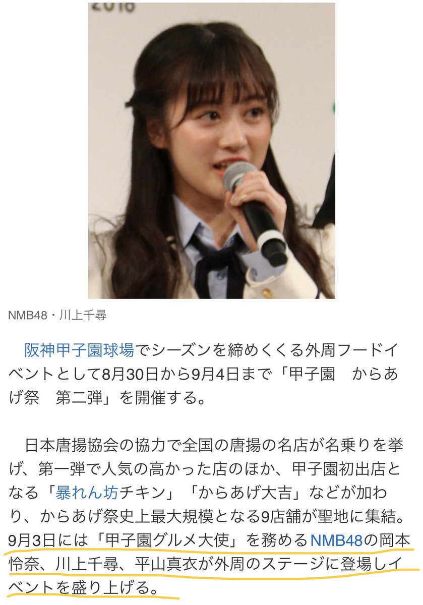 阪神 からあげ祭第二弾に史上最大9店舗が集結!グルメ大使のNMB48・川上千尋らが盛り上げる― スポニチ Sponichi Annex 野球 https://www.sponichi.co.jp/baseball/news/2022/08/22/kiji/20220822s00001173282000c.html …