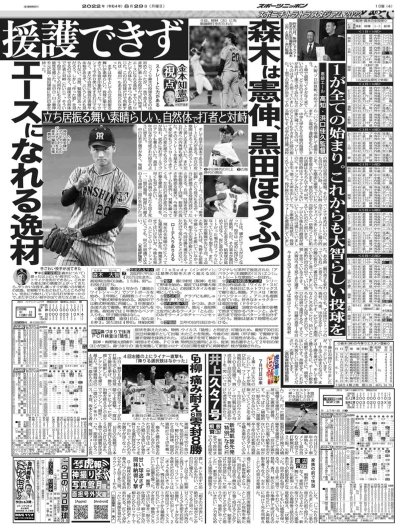 金本知憲氏 阪神・森木に感じる川上憲伸、黒田博樹の雰囲気 直球も変化球も一級品、近い将来エースに― スポニチ Sponichi Annex 野球 https://www.sponichi.co.jp/baseball/news/2022/08/29/kiji/20220828s00001173759000c.html …