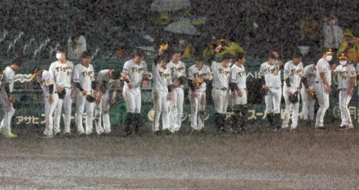 → 阪神 降雨中断→再開1球でコールド勝利、異例の“土砂降り整列”にファン拍手「これだからやめられない」(デイリースポーツ)
