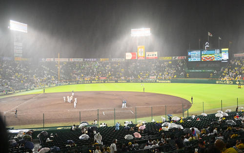 チームは痛恨の3連敗で、この日勝った4位広島に1ゲーム差まで迫られた。Aクラスを争う佳境でエースと自慢の方程式が粉砕された。甲子園に、ダブルショックの涙雨が降り注いだ。【古財稜明】