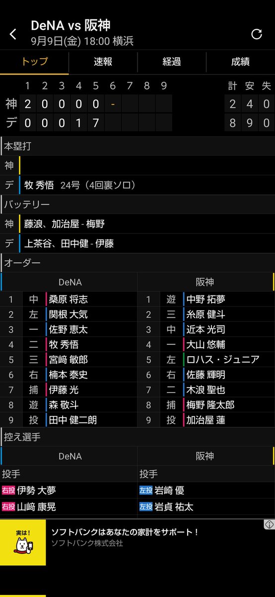 ◇セ・リーグ 阪神―DeNA(2022年9月9日 横浜)