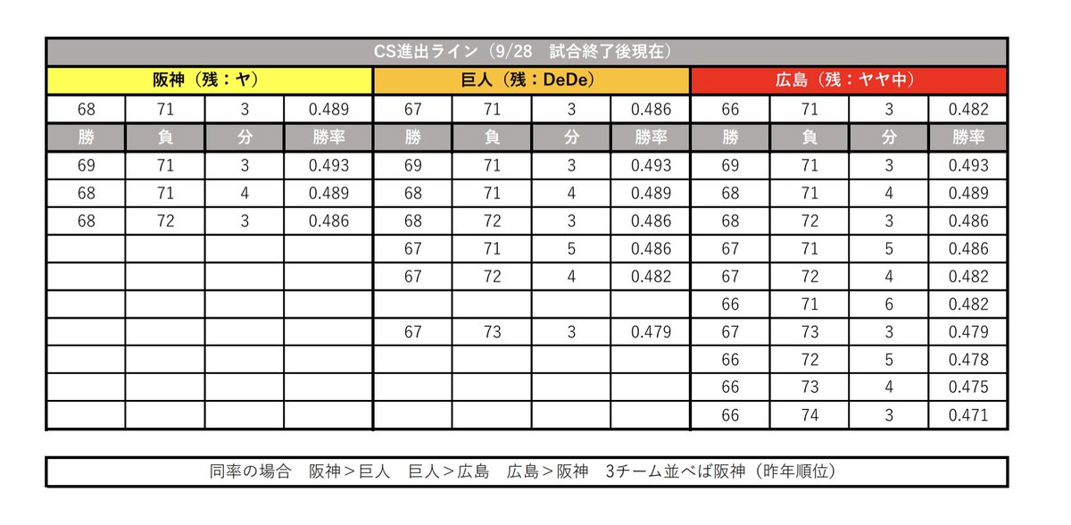 @hanshintigersjp 広島が1つでも落としたらCSあるぞこれ