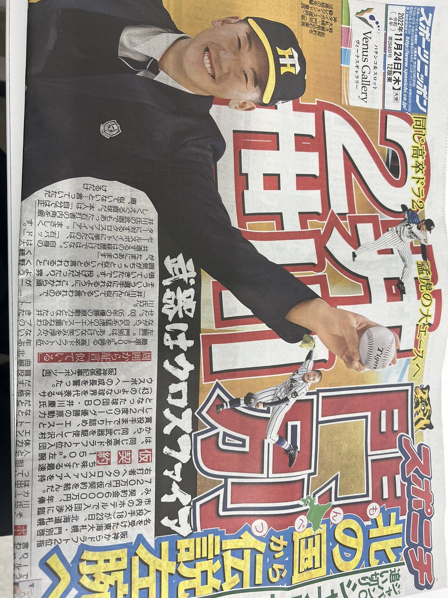 1面は仮契約を結んだドラフト2位門別啓人選手です😄…かつての🐯のエース井川慶氏にそっくりと言われてますので、早く見てみたいですね🤗 https://www.instagram.com/p/ClUbhNPhUFn/?igshid=YTgzYjQ4ZTY= …