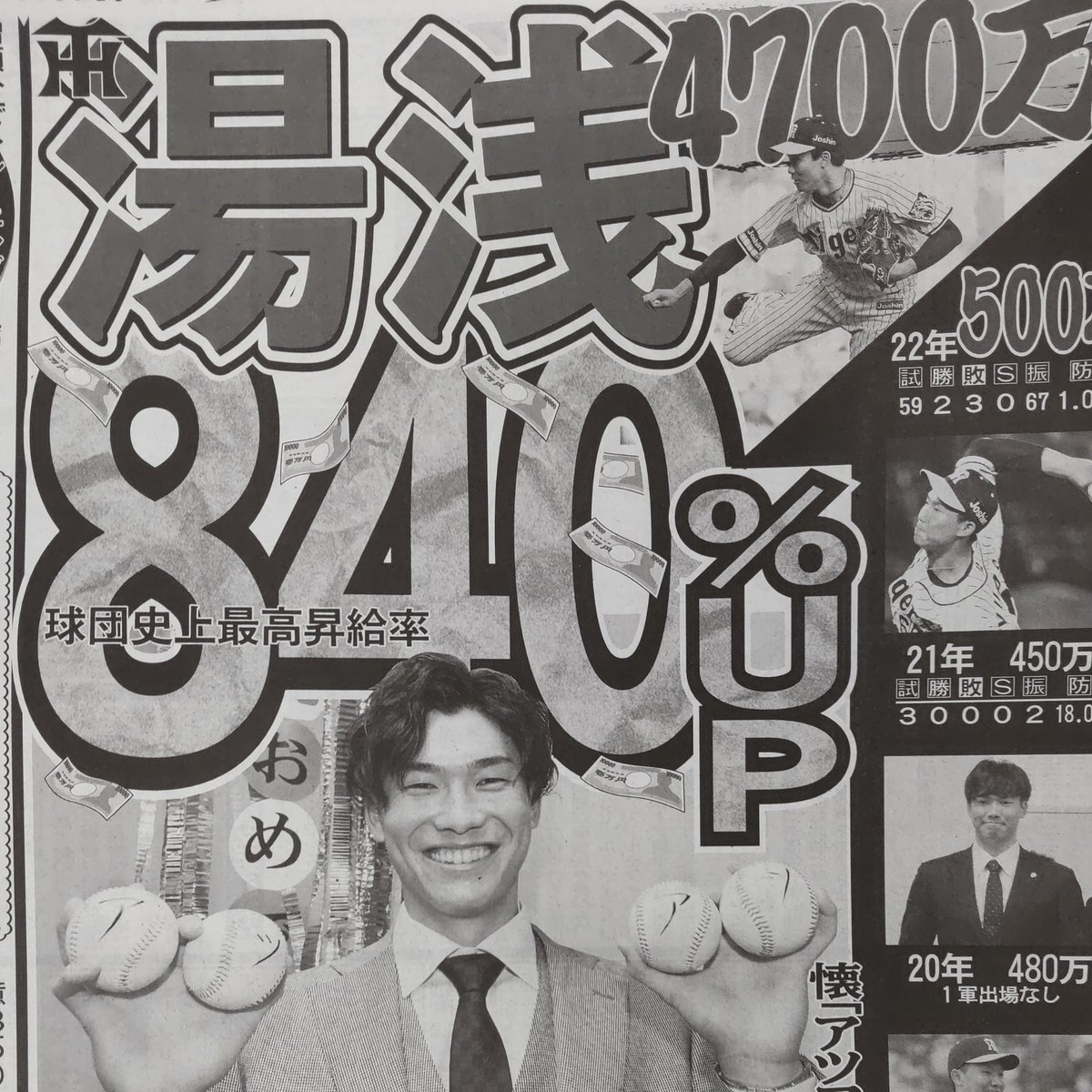 4年目の湯浅京己(あつき)投手の昇給率がなんと840%増⤴️⤴️⤴️