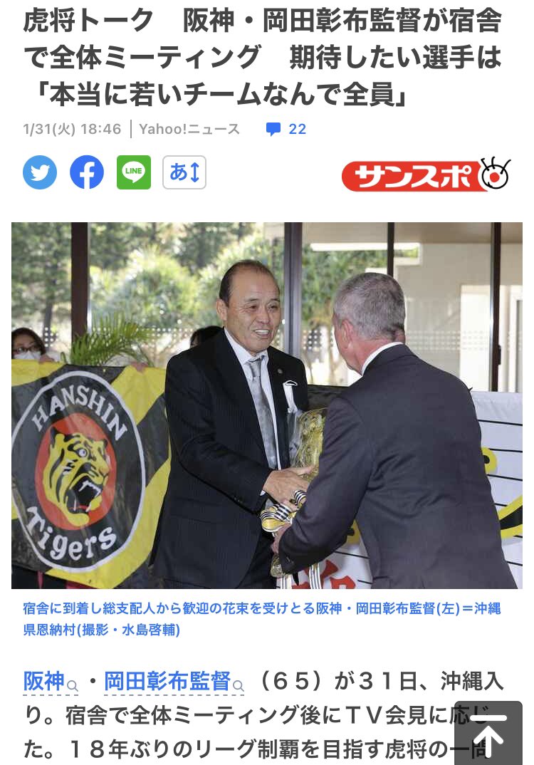 岡田監督は、「区別はするけど、差別はしない」とおっしゃっていますし、期待したい選手は「全員」だそうですので、4番大山、(おそらく)5番サトテルを中心に、全員に奮闘を期待します🤗