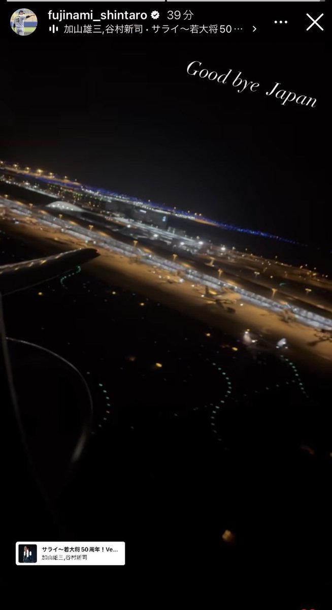 阪神からポスティングシステムを利用して米大リーグ・アスレチックスに移籍した藤浪晋太郎投手(28)が7日、自身のインスタグラムを更新し、渡米したことを報告した。飛行機が離陸する際の窓からの景色を撮影した動画を投稿し「Good bye Japan」(原文ママ)とメッセージを添えた。藤浪は6日に鳴尾浜での国内自主トレを打ち上げた。今後は現地時間15日(日本時間16日)から米アリゾナ州で始まるアスレチックスのバッテリー組キャンプに参加する。