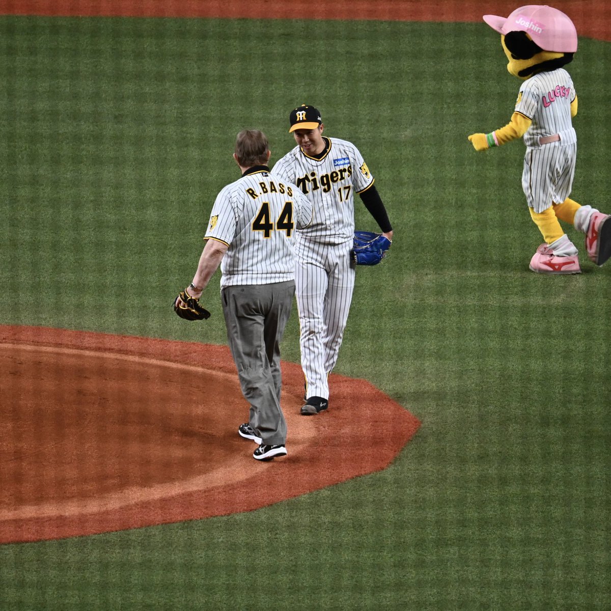 バース氏が始球式に登場「気持ちよかった。ホームプレートの距離が思ったより遠かった」(サンケイスポーツ)