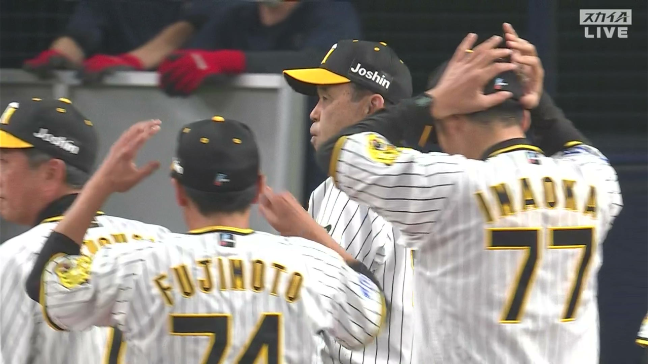 先発の才木は初回、先頭の佐野に右前打を浴びたが、後続を3者連続三振に斬って勢いに乗る。107球を投じ、6回1/3を4安打8奪三振1失点でマウンドを降りた。後を継いだ岩崎は3連投。1死一、二塁から代打・大和の右前適時打で1点を失うと、2死一、三塁から宮崎にフェンス直撃の左越え打を浴びた。三走の生還を許したが、鮮やかな中継プレーで一走・佐野を本塁で刺した。