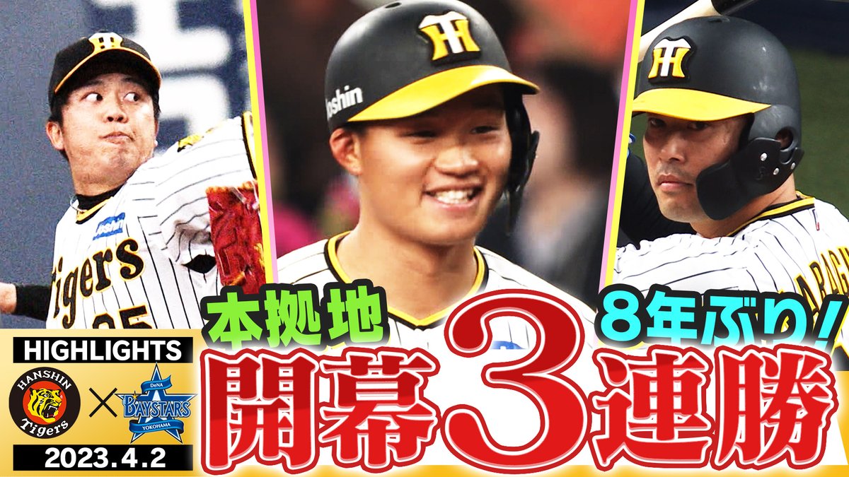 阪神が2021年以来の開幕3連勝を飾った。岡田政権下では08年以来15年ぶりとなった。「7番・右翼」で先発したドラフト1位の森下はプロ初のマルチとなる2安打2打点の活躍で、プロ初のお立ち台に上がった。